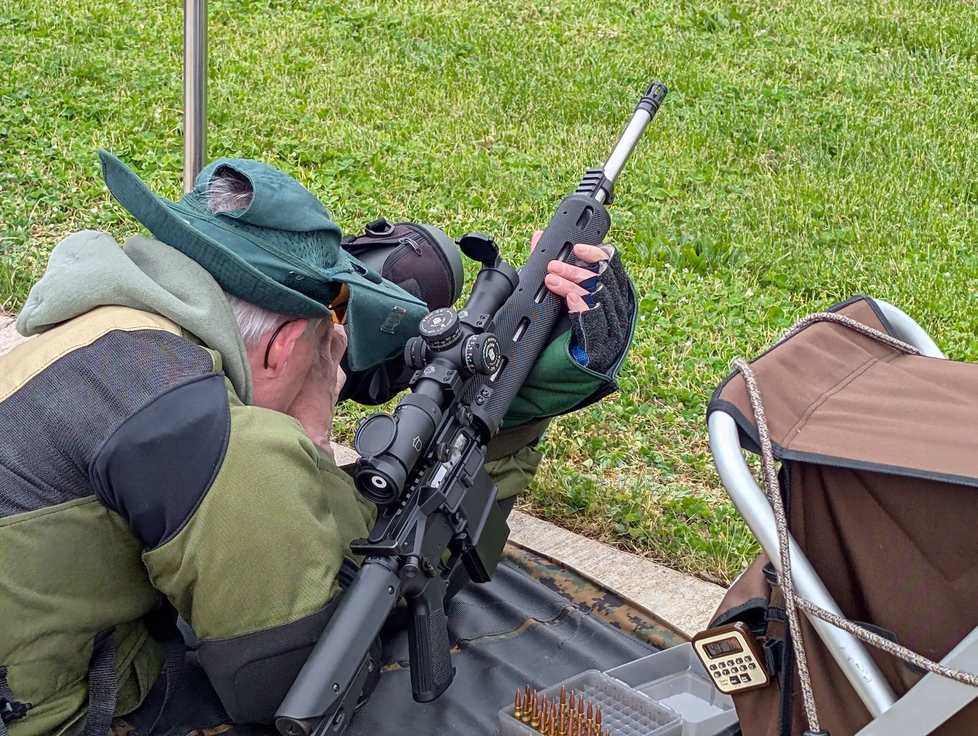 Depending on the type of event, competitors may use different types of rifles. During Across the Course events, competitors may use a “Match Rifle” (bolt action of semi auto) with unlimited optics, or a ‘U.S. Service Rifle’ with optics not to exceed 4.5 power. Mid-Range events may use the Match Rifle, Service Rifle, F-Class Rifle, or specialized long-range rifles, some with rests. The same rifles may be used in Long Range Events.